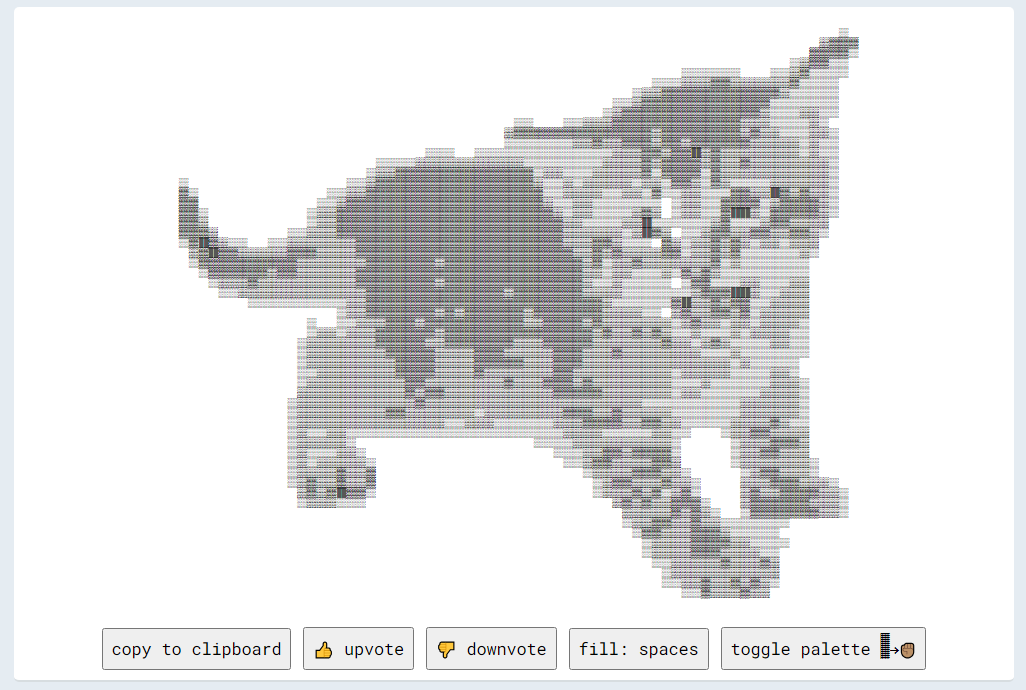 The site has a large collection of text art that you can just copy to your clipboard and use in your text based projects. I can also adjust some settings like how to fill the empty areas of the image and change the palette.